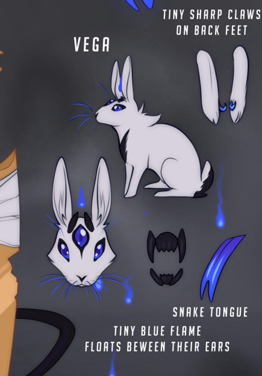 A relative to the Tsunolope, it has been bred to be smaller and in more coat colours and patterns. They have three eyes, small horns and sharp fangs. They also sport small curved dew claws on their back hocks. They tend to be more docile and relaxed than their larger cousins and make great lap pets.[ Image will be replaced and updated as they no longer sport a flame ]